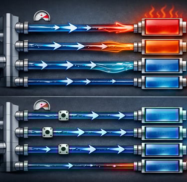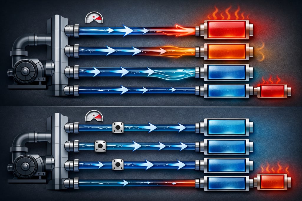 At its essence, flow balancing means adding resistance to branches that receive too much flow in order to redistribute it to those that receive too little—all while staying within a defined pressure drop or pump power budget. It is not about increasing total flow blindly. It is about intelligently shaping resistance so that each critical component receives exactly the coolant it requires.