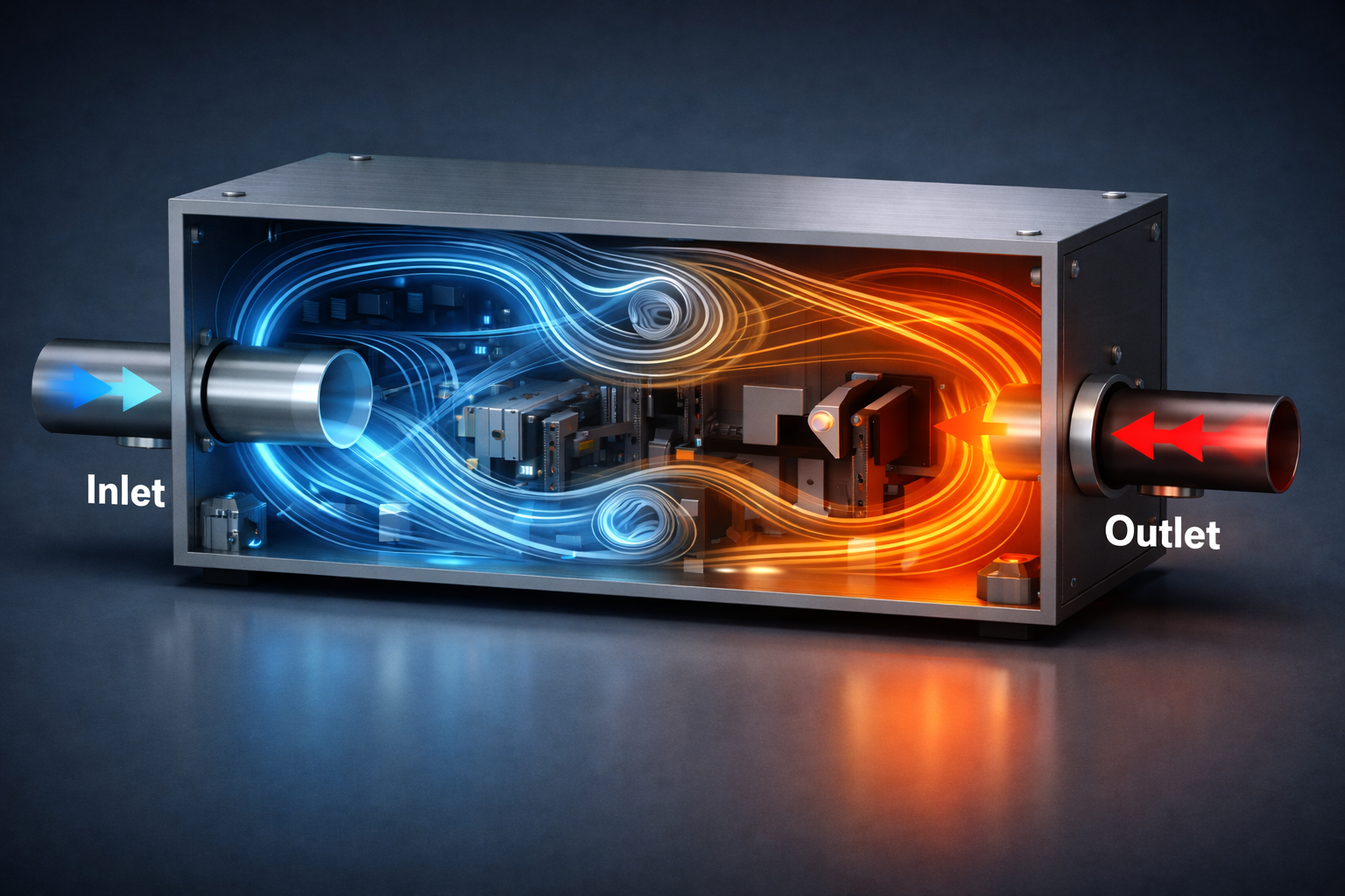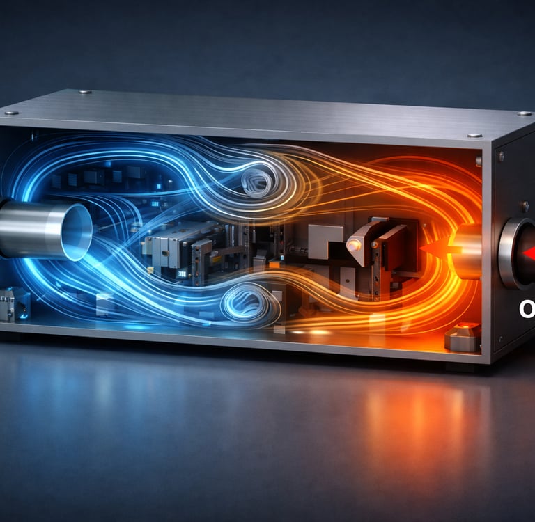 Theory provides a vital starting point, but how does it hold up when applied to a complex, real-world module? In this article, we put our formulas to the test using the Module —a representative machine housing—and compare analytical predictions against transient CFD (Computational Fluid Dynamics) simulations. We will also demonstrate how small design iterations can drastically improve purging efficiency. First thing is first: